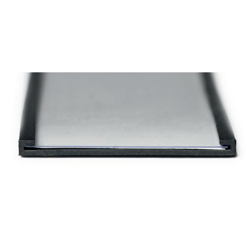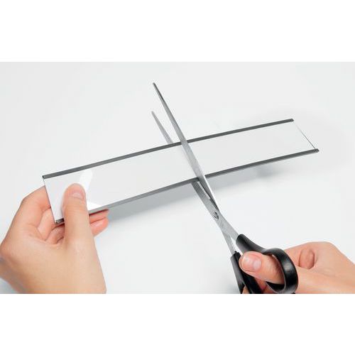 Magnetiske etiketholdere med hvide etiketter og gennemsigtig beskyttelsesplast.