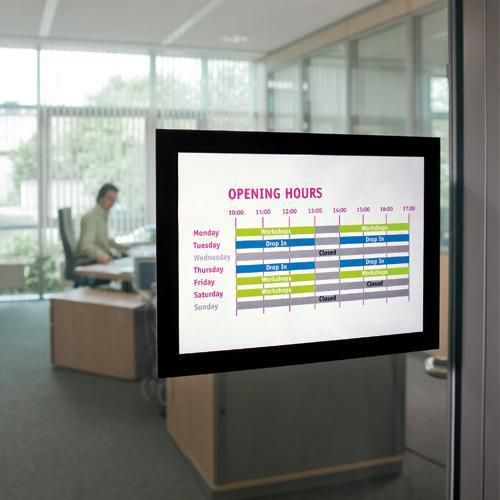 Selvklæbende informationsramme til oplysninger. Magnetisk ramme på forsiden gør det nemt at udskifte...