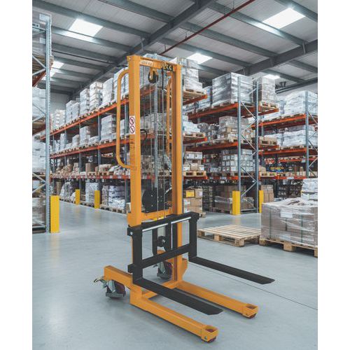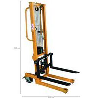 | Varenavn | Manuel pallestabler – kapacitet 250 kg, Kapacitet: 250 kg, Maksimal løftehøjde: 1560 mm, Totallængde: 1325 mm |