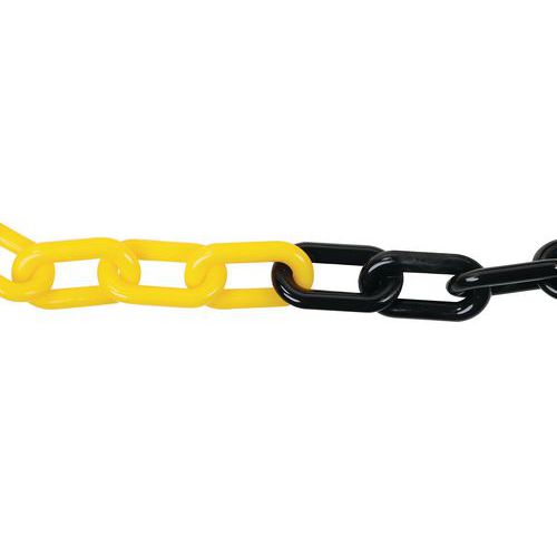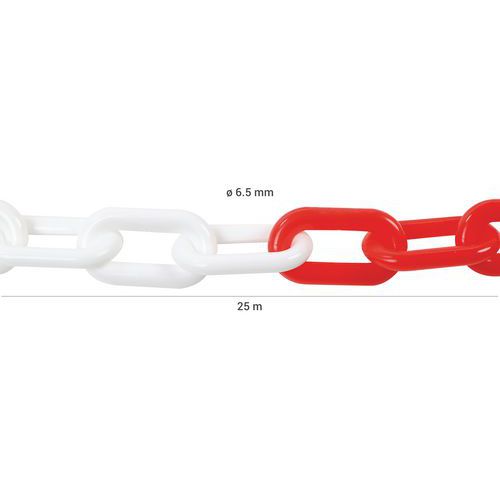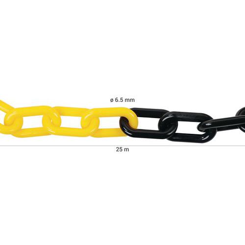 | Varenavn | Barrierekæde, Længde: 25 m, Materialer: Polyéthylène, Farve: Sort/gul, Diameter Ø: 6.5 mm |