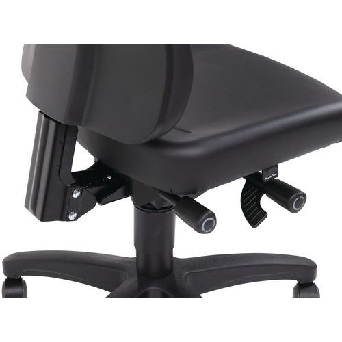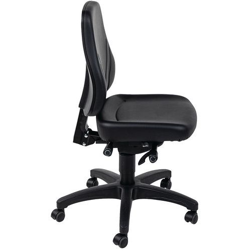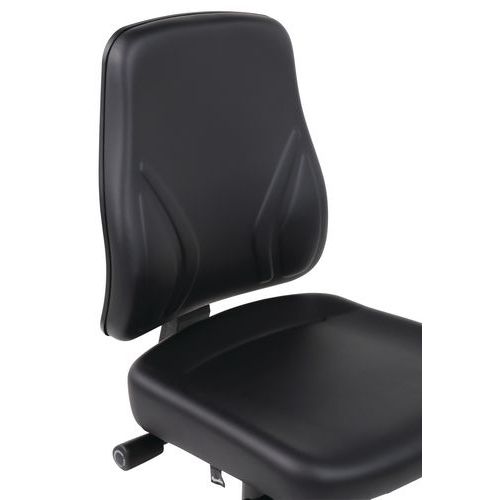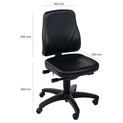 | Varenavn | ergonomisk værkstedssæde, lav model, på hjul, Armlæn: nej, Type af fod: Hjul, Sæde, materiale: Kunstlæder |