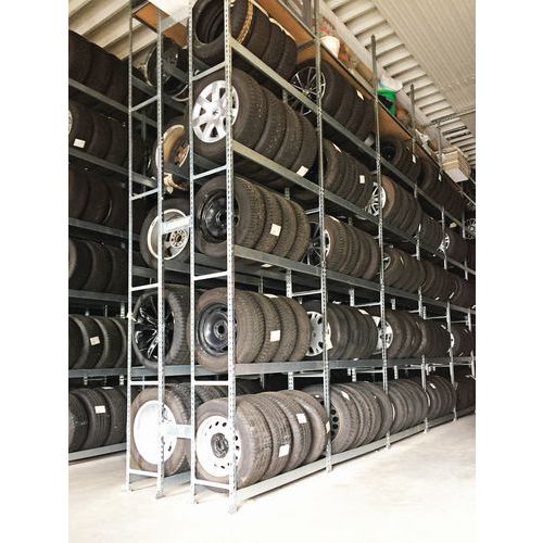 - Kraftige lagerreoler af metal til opbevaring af dæk.