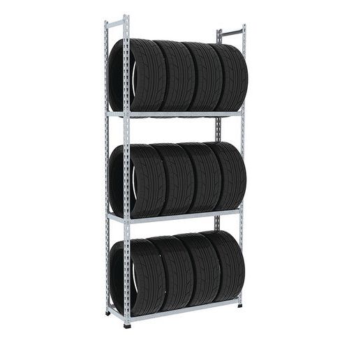 - Kraftige lagerreoler af metal til opbevaring af dæk.