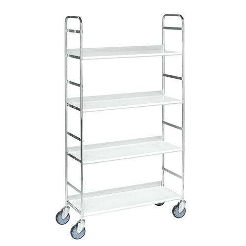 Mappevogn med flytbare hylder til ringbind. Elektrogalvaniseret med lamineret hylde. Fuldsvejset. 6 bogstøtter er inkluderede. Fremstillet i EU Maksimal last (kg) : 100