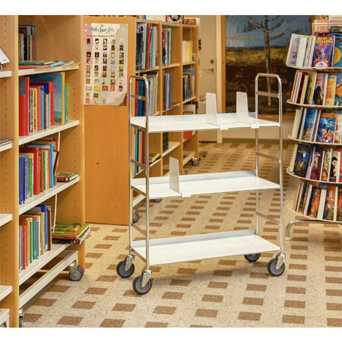 Mappevogn med flytbare hylder til ringbind. Elektrogalvaniseret med lamineret hylde. Fuldsvejset. 6 bogstøtter er inkluderede.