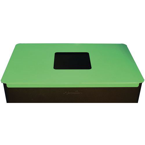 Genbrugsbeholder med aftageligt låg. Nem sortering takket være farven og den tilpassede åbning. Beholder med integreret klemmesæt til at fastgøre posen. Poserne er nemme at isætte og fjerne.