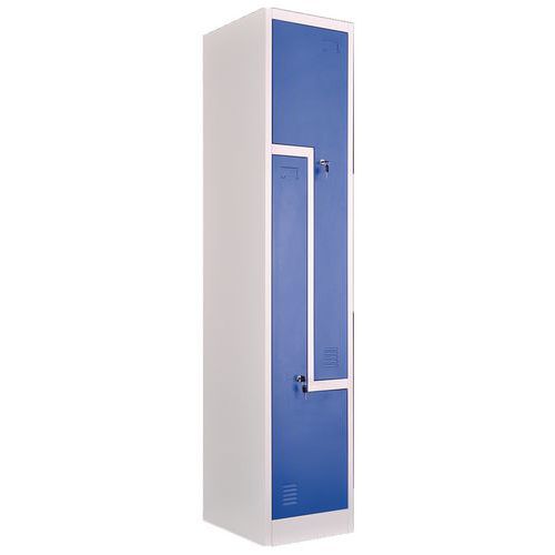 | Varenavn | Metalskab med to rum med L-formede døre , Skabstype: L-dør, Materiale: Stål, Antal rum/søjle: 2 |