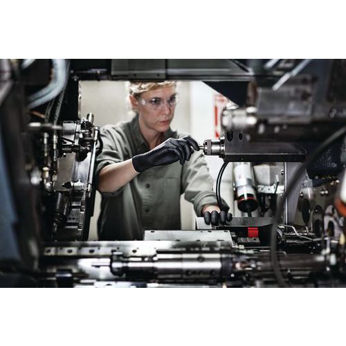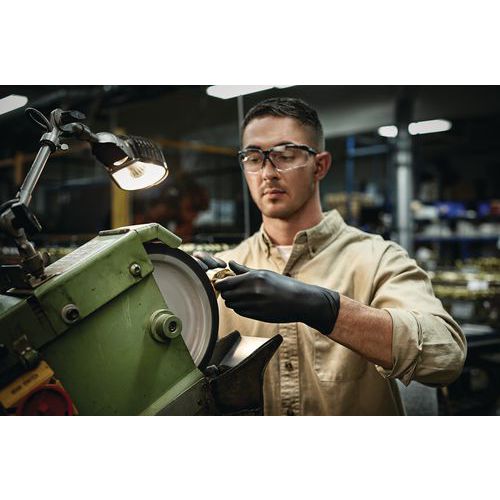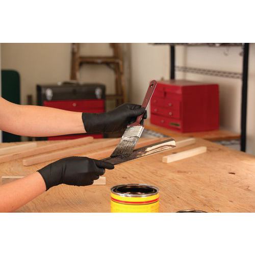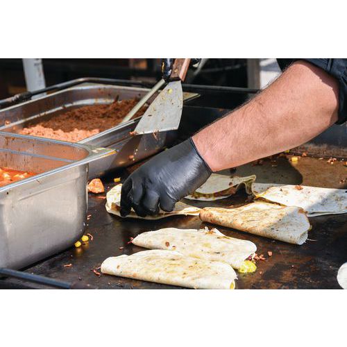 Sorte latex- og pudderfri handsker til beskyttelse mod kemikalier og væsker. Fuldlimet med en ikke-skummende formel, der giver et fast greb ved håndtering af våde genstande. Nedsat risiko for hudirritation eller allergi. Ikke-skummende design for lettere håndtering af genstande i fugtige miljøer. Fuldt struktureret overflade for et sikkert greb. Godkendt til fødevarehåndtering: Velegnet til mange anvendelser inden for fødevareindustrien.