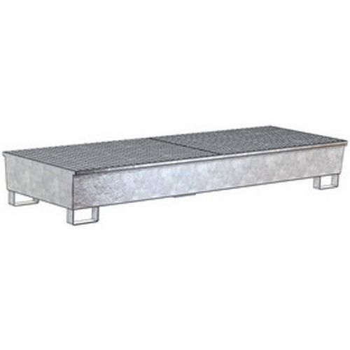 Opsamlingskar, der opsamler eventuel spild og lækage. Fremstillede af 2 mm stål, galvaniseret eller epoxylakeret i orange RAL 2000. Risten er i galvaniseret stål, og er aftagelig for at lette rengøringen. Modstandsdygtig overfor kemikalier. Kan flyttes med truck uden belastning.