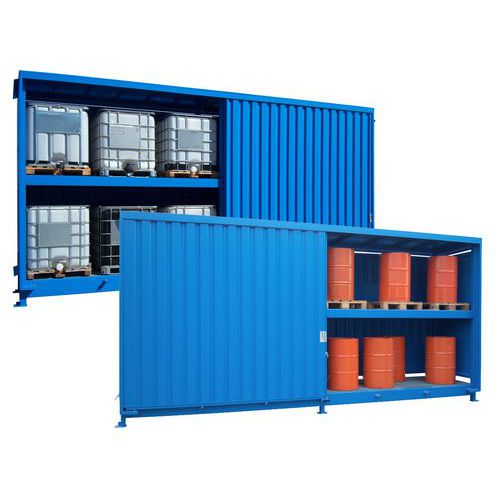 I WSC-F-E.2-serien findes miljøcontainere til opbevaring af både 200-liters tromler og IBC-beholdere.