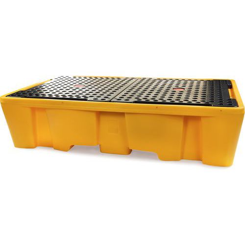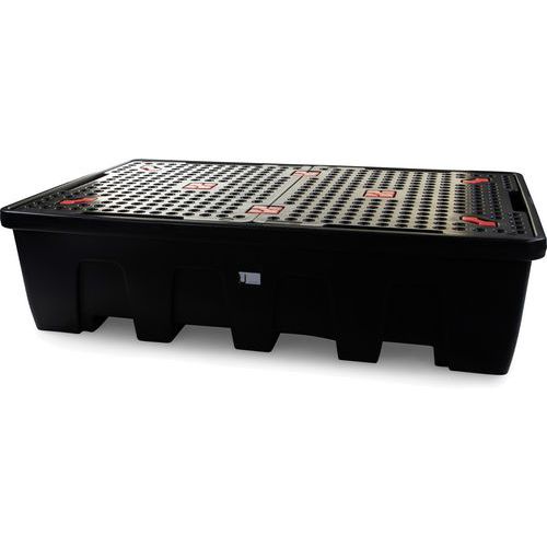 Opsamlingskar til opbevaring og dræning af aggressive kemikalier. Robuste og brugervenlige indsamlingsbeholdere, lavet af PE, 100% genanvendelige. Nem at opbevare, flytte og rengøre. Kompatibel med de fleste gaffeltrucks, brug gaffelforlængere, når det er nødvendigt. Brug altid de medfølgende ?støtteben? når gitre er på plads. Fjern IBC-beholderen, og tøm opsamlingsdelen for spild, før den flyttes.