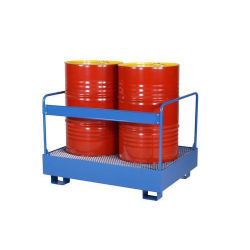 - Tøndeopsamlingskarrne er fremstillet i 3 mm stålplade og lakeret med en tokomponent lak, der indeholder rustbeskyttelse.