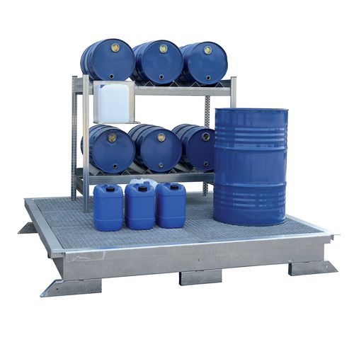 | Varenavn | GW2 opsamlingskar, varmforsinket, Kapacitet (antal tønder): 9, Gitter: ja, Retentionskapacitet: 660 L |