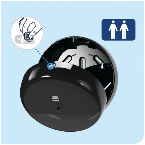 | Varenavn | Mini toiletpapir dispenser Tork T9 sort, Farve: Sort, Højde: 26.9 cm, Bredde: 26.9 cm, Dybde: 15.6 cm |