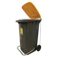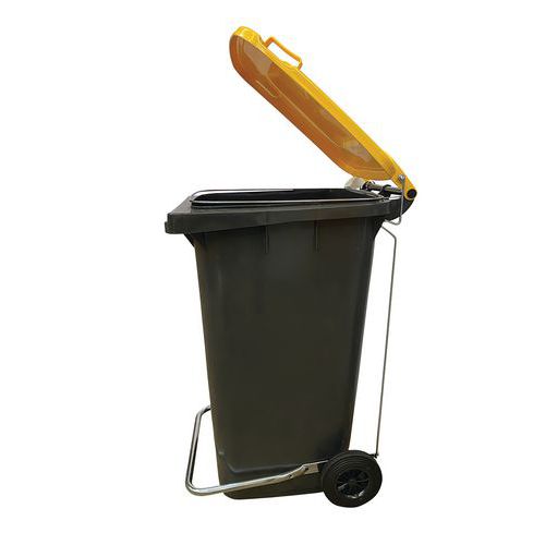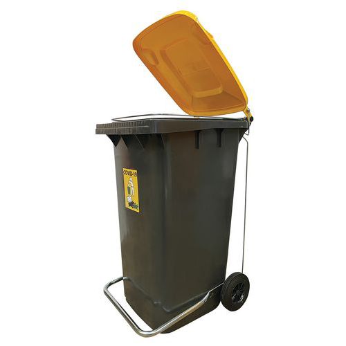 Mobil hygiejnebeholder med hygiejnisk pedal. Containeren er let at vedligeholde takket være sin glatte plastoverflade. Container til affaldssortering med gult låg og dedikeret etiket. Containeren er meget stabil og nem at flytte med to solide hjul. Alle Manutan-produkter er testet og godkendt af vores teams.