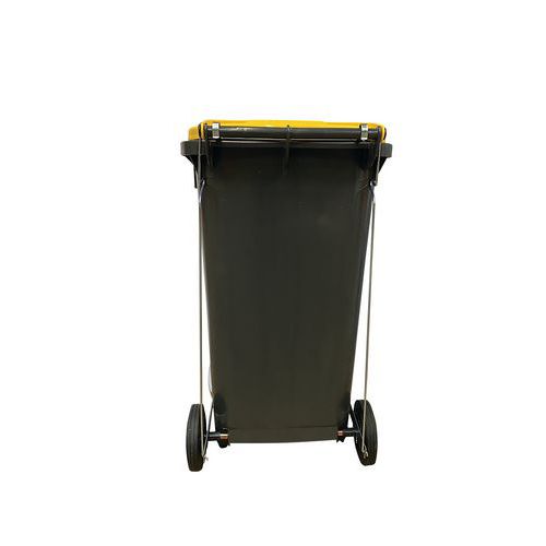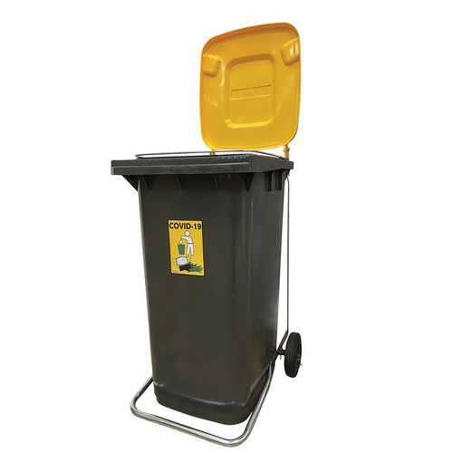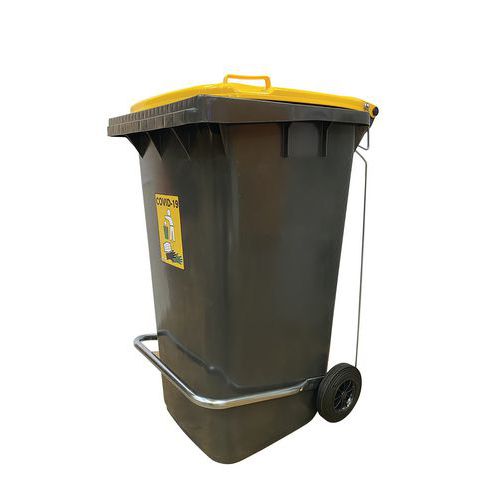Mobil hygiejnebeholder med hygiejnisk pedal. Containeren er let at vedligeholde takket være sin glatte plastoverflade. Container til affaldssortering med gult låg og dedikeret etiket. Containeren er meget stabil og nem at flytte med to solide hjul. Alle Manutan-produkter er testet og godkendt af vores teams.