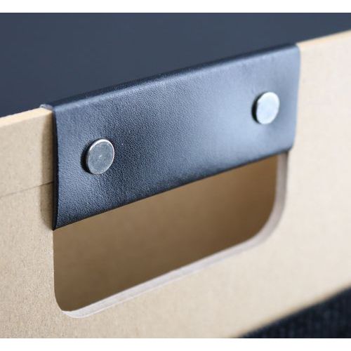 Finisher: Dens farverige harmoni og kvaliteten af dens materialer, såsom læderhåndtagene, giver vores værktøjskasse et strejf af elegance og raffinement på dit skrivebord.
