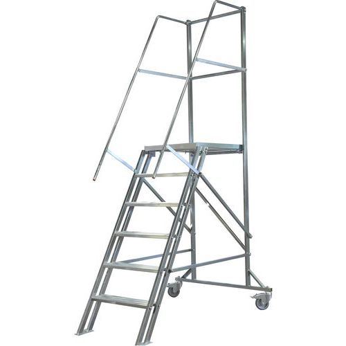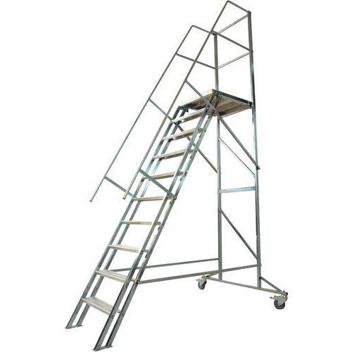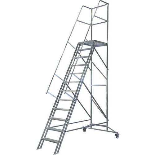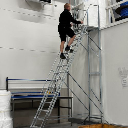 - Denne mobile trappestige giver hurtig og sikker adgang til en hævet arbejdsflade.