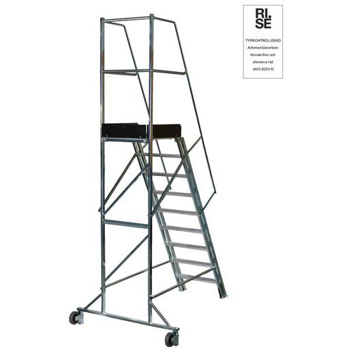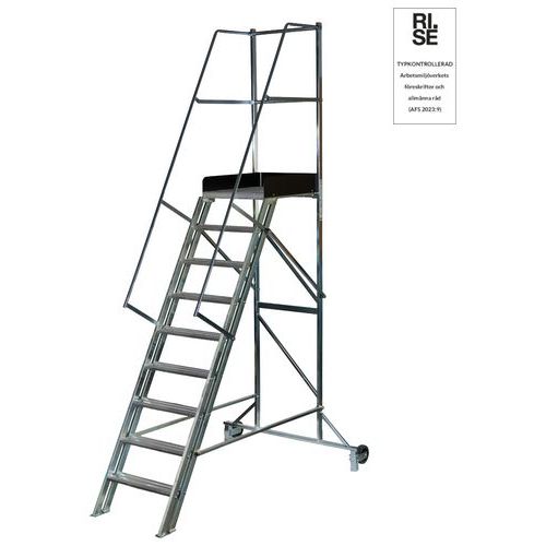 - Denne mobile trappestige giver hurtig og sikker adgang til en hævet arbejdsflade.