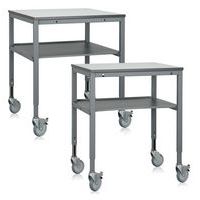 Mobilt arbejdsbord med manuelt højdejusterbare benpar i stål, grå laminatbordplade 24 mm, praktisk underhylde, to C-profiler til tilbehør samt hjulsæt.