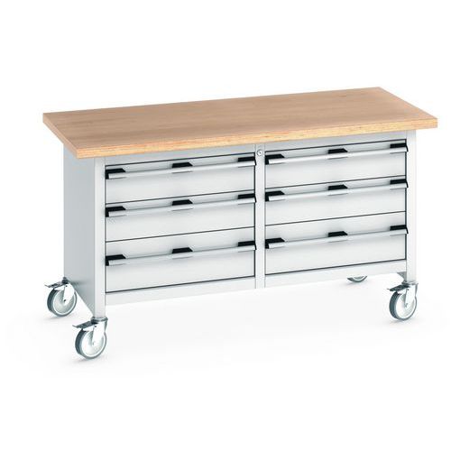 Arbejdsbænken er udstyret med 4 drejelige gummihjul (2 med bremser).