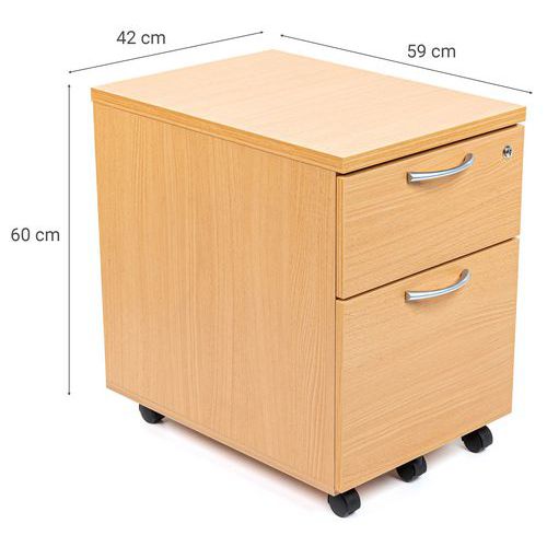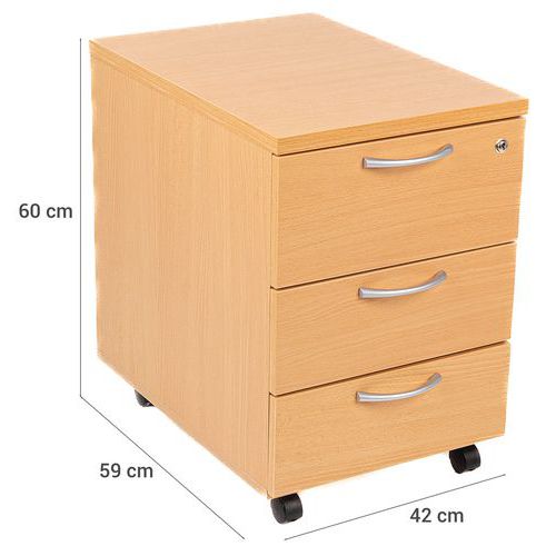 | Varenavn | Mobilt sideskab, Materiale: Melamin, Totalhøjde: 60 cm, Antal skuffer: 3, Totalbredde: 42 cm |