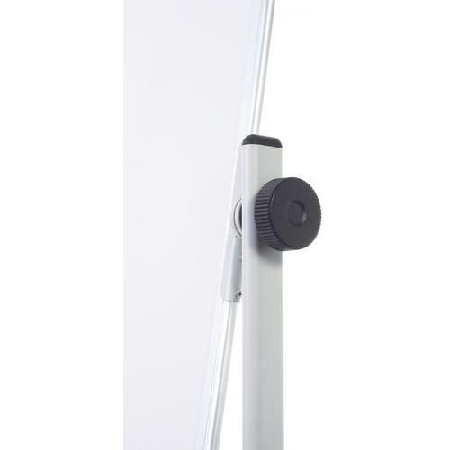 Whiteboarden har en elegant aluminiumsramme og står på et stativ med fire låsbare hjul, der gør den nem at flytte og placere sikkert.