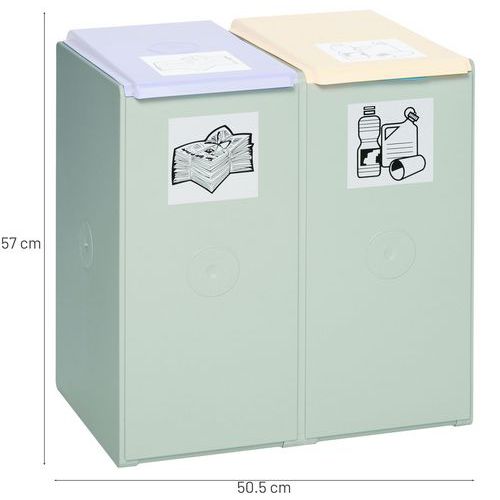 Modulsoptønde 40 liter, ekstra stærk, af høj kvalitet plastik for lang levetid. Fås i flere konfigurationer, 1, 2, 3 eller 4 – perfekt til alle slags miljøer. Man kan nemt selv oprette sin egen affaldssorteringsstation ved at bestille låg i forskellige farver, spand/indsats og vogn (alle er tilbehør). Leveres sammen med selvklæbende billeder for effektiv affaldssortering. Sortering af affald ifølge HACCP-princippet, Rød = glas, Blå = papir, Gul = plast, Grøn = organisk affald. Fremstillet i Tyskland Garanti : 3 år Sortering