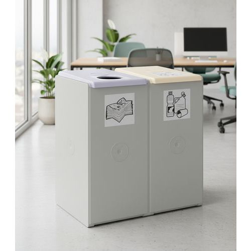 Modulsoptønde 40 liter, ekstra stærk, af høj kvalitet plastik for lang levetid. Fås i flere konfigurationer, 1, 2, 3 eller 4 – perfekt til alle slags miljøer. Man kan nemt selv oprette sin egen affaldssorteringsstation ved at bestille låg i forskellige farver, spand/indsats og vogn (alle er tilbehør). Leveres sammen med selvklæbende billeder for effektiv affaldssortering. Sortering af affald ifølge HACCP-princippet, Rød = glas, Blå = papir, Gul = plast, Grøn = organisk affald.