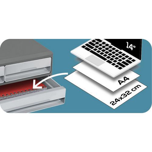 Ideel til opbevaring af dine kontorartikler (penne, lommeregner, A5-notesblok osv.) og computertilbehør (ekstern harddisk, USB-nøgle, mus osv.).