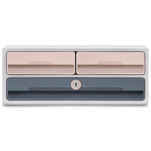 GDPR-kompatibel: en lås fastgør de 3 skuffer, og en sikkerhedsåbning på bagsiden giver mulighed for installation af et tyverisikringskabel (medfølger ikke).