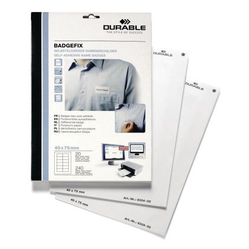 | Varenavn | Navneskilt BADGEFIX 40x75, selvklæbende, Farve: Transparent, Type af fastgørelse: Klæbemiddel, Længde: 75 mm |