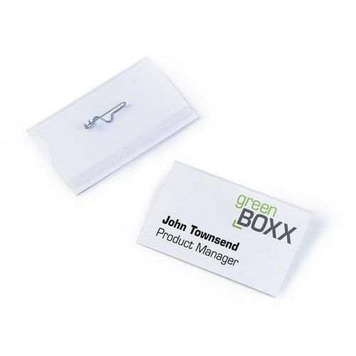 | Varenavn | Navneskilte, Type af fastgørelse: Sikkerhedsnål, Længde: 90 mm, Højde: 54 mm |