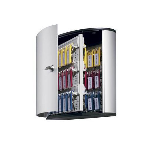 Nøgleskab i aluminium. Du monterer skabet på væggen ved at skrue de medfølgende skruer og dyvler i fra den indvendige side. På den indvendige side af døren findes en nøgleoversigt. Cylinderlås med 2 nøgler medfølger (gælder ikke 24253). 6 nøgleholdere medfølger (2 blå, 2 sorte, 1 rød og 1 gul). Indbrudsforsinkende skabe: Et indbrudsforsinkende skab yder en vis beskyttelse ved angreb, men er ikke testet eller godkendt til dette. Skabene bør ikke anvendes til at beskytte større værdie.