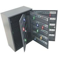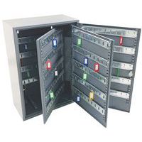 Skab med kroge til opbevaring af nøgler. Enkel lukkeanordning med cylinderlås. Leveres med 2 nøgler og nøgleholdere: 20 gul, 20 blå, 20 rød, 20 grøn, 20 sort.