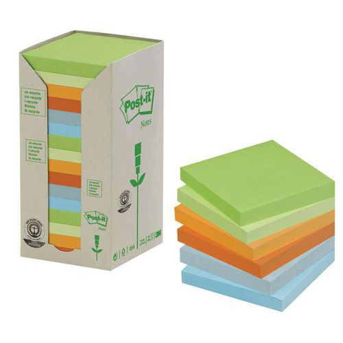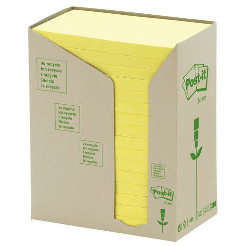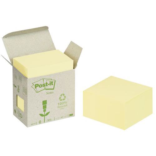 - Miljøvenlige Post-it® Notes fremstillet af 100 % genbrugspapir og genbrugsmateriale i emballagen.
