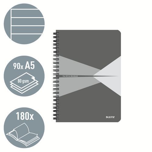 | Varenavn | Notesbog Office PP A5 linjeret mix, Vægt: 80 g/m², Format: 148 x 210 mm (A5), Linjering: Linjer |