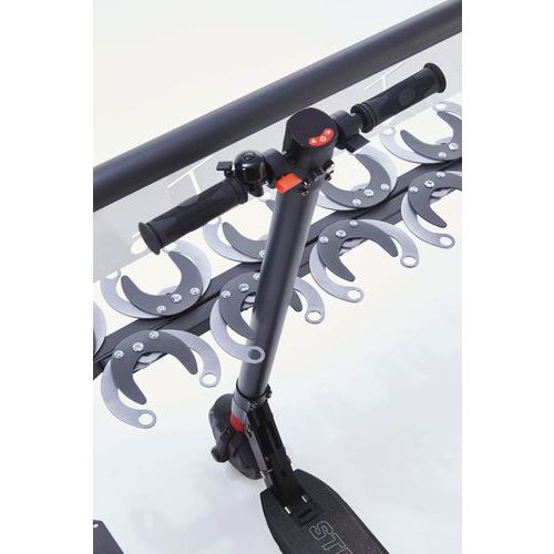 | Varenavn | Opbevaring til el-løbehjul, Totallængde: 136 mm, Antal pladser: 12, Model: Løbehjulsstativ |
