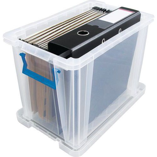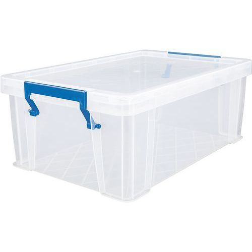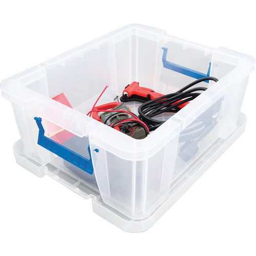 Opbevaringsbeholder og låg - robust og holdbar beholder til alle former for opbevaring. Håndtagene gør det nemt og bekvemt at transportere den. Beholderen er gennemsigtig, hvilket gør det lettere at se og finde tingene indeni.
