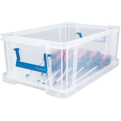 Opbevaringsbeholder og låg - robust og holdbar beholder til alle former for opbevaring. Håndtagene gør det nemt og bekvemt at transportere den. Beholderen er gennemsigtig, hvilket gør det lettere at se og finde tingene indeni. Fremstillet i Storbritannien NSF-certificeret Maksimal last (kg) : 200