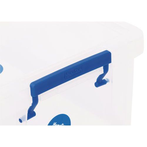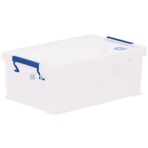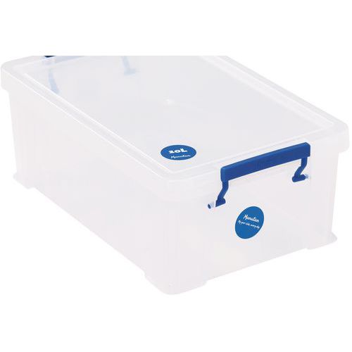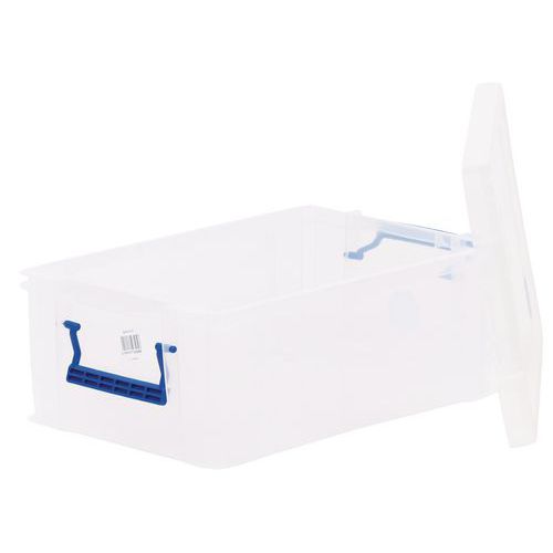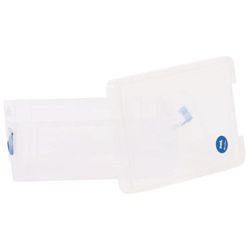 Opbevaringsbeholder og låg - robust og holdbar beholder til alle former for opbevaring. Håndtagene gør det nemt og bekvemt at transportere den. Beholderen er gennemsigtig, hvilket gør det lettere at se og finde tingene indeni.