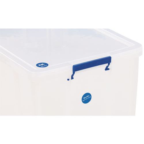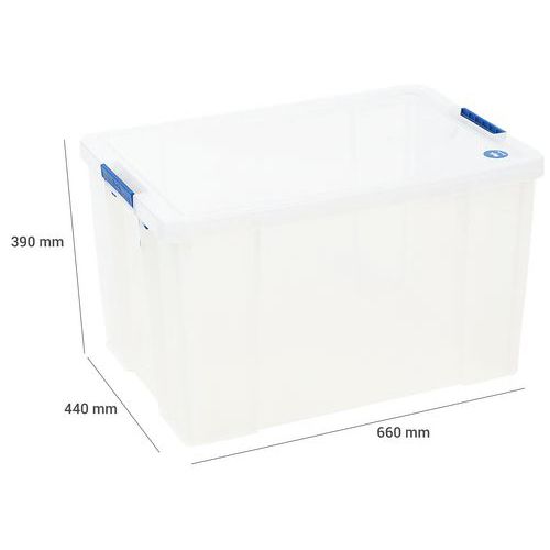 Opbevaringsbeholder og låg - robust og holdbar beholder til alle former for opbevaring. Håndtagene gør det nemt og bekvemt at transportere den. Beholderen er gennemsigtig, hvilket gør det lettere at se og finde tingene indeni. Fremstillet i Storbritannien Maksimal last (kg) : 200 kg NSF-certificeret