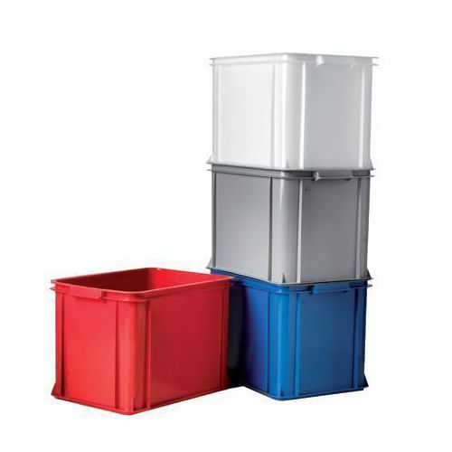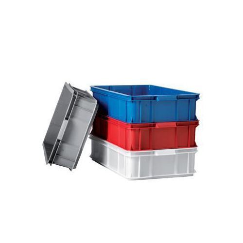 Fødevaregodkendt opbevaringskasse New York, fremstillet i slagfast HD-polyethylen – perfekt til transport, lager og opbevaring. Modstandsdygtig over for de fleste syrer, olier og alkaliske opløsningsmidler. Kassen har robuste håndtag på kortsiderne og en plan bund, der egner sig til rullebaner. Meget stabil ved stabling. Modulopdelt til standardiseret Europalle (EUR/EPAL).