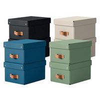 - Boksene har et stilrent læderhåndtag, som gør dem nemme at trække ud fra hylder og skabe.