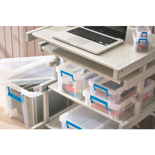Praktisk opbevaringskasse, hvor man omgående kan se indholdet.