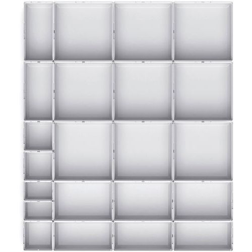 | Varenavn | Opbevaringskasser til Cubio EKK-67100 skuffe, 22 rum – Bott, Bredde: 650 mm, Dybde: 750 mm, Højde: 100 mm |