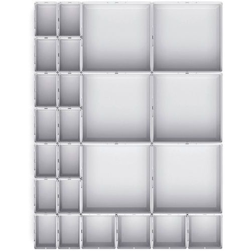 | Varenavn | Opbevaringskasser til Cubio EKK6100 skuffe, 24 rum – Bott, Bredde: 525 mm, Dybde: 650 mm, Højde: 100 mm |