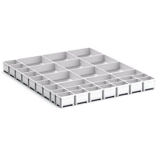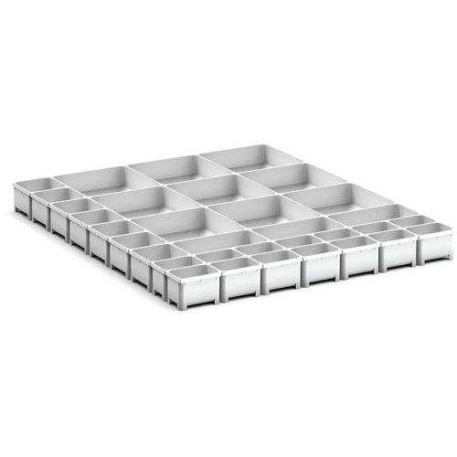 | Varenavn | Opbevaringskasser til skuffe Cubio EKK-6775, 33 rum – Bott, Bredde: 650 mm, Dybde: 750 mm, Højde: 75 mm |
