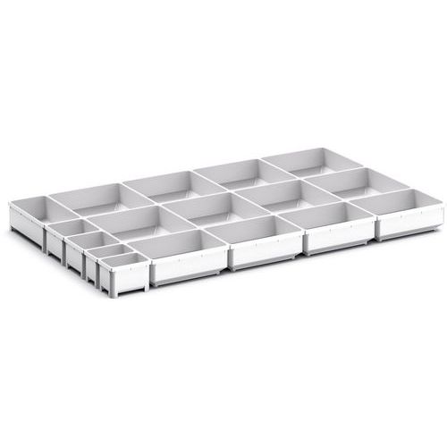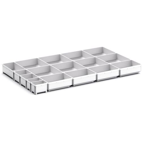 | Varenavn | Opbevaringskasser til skuffe Cubio EKK-8575, 17 rum – Bott, Bredde: 800 mm, Dybde: 525 mm, Højde: 75 mm |