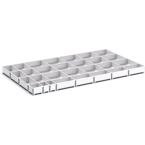 | Varenavn | Opbevaringskasser til skuffe Cubio EKK0675, 29 rum – Bott, Bredde: 1050 mm, Dybde: 650 mm, Højde: 75 mm |